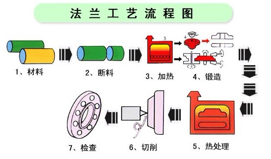 法蘭一般加工制作程序為:買原材料→切割下料→固溶→ 鍛打成型 →車床精加工。具體如圖所示: